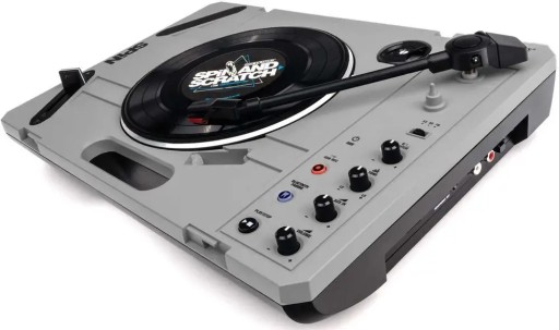 - W zestawie płyta do scratchowania 7”, preinstalowana wkładka, slipmata, pokrywa, adapter do płyt, kabel USB, instrukcja obsługi i aplikacja Super Spin Duck Looper