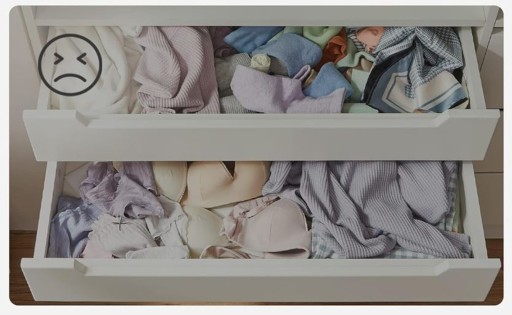 Efekt PRZED i PO zastosowaniu organizera w szufladzie: