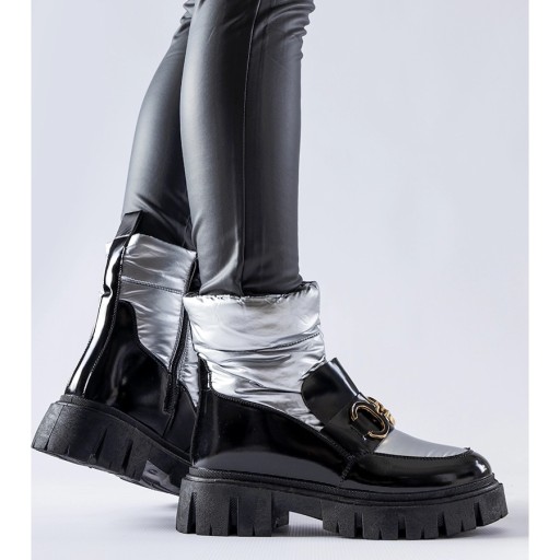 Лакированные зимние ботинки черно-серебристого цвета, размер 38.