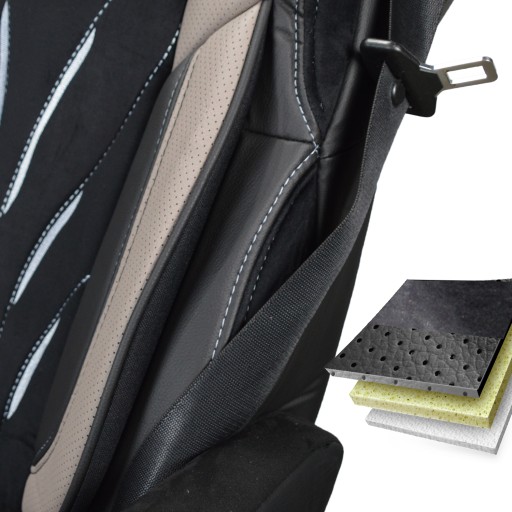Pokrowce na fotele ROYAL DeLuxe do samochodów ciężarowych z wysokiej jakości perforowanej ekoskóry i alkantary.