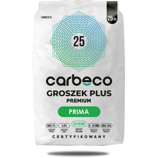 Groszek plus CARBECO Premium PRIMA – wysokokaloryczny węgiel w workach. Cechuje go wyjątkowa kaloryczność 25 MJ/kg, niska wilgotność oraz niewielka zawartości siarki i popiołu. CARBECO groszek plus PRIMA dominuje w średniej półce cenowej, zapewniając niesamowity stosunek ceny do jakości. Zważywszy na to, że oferujmy groszek z darmową dostawą, można nawet przyjąć, że jest to tani groszek w jakości premium.