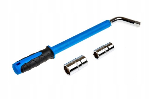 Rozsuwana, teleskopowa rączka, pozwala zwiększyć siłę z jaką działamy na śrubę. W zestawie dwie nasadki, które pasują do większości dostępnych na polskim rynku modeli pojazdów.