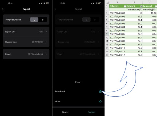 Czujnik posiada unikalną funkcję eksportu danych do pliku .csv, dzięki czemu można precyzyjnie sprawdzić jaka temperatura lub wilgotność została zmierzona w danym dniu lub godzinie w przeszłości.