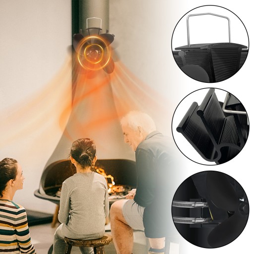 【Wydajność】 Nadaje się do wszystkich pieców na drewno, kominków itd. z rurami kominowymi. Nie wymaga skomplikowanej instalacji. Wystarczy przymocować go do rury kominowej za pomocą dołączonego żelaznego pierścienia, aby przenieść ciepło kominka do każdego kąta pomieszczenia.√ Nie wymaga prądu ani baterii, jest napędzany ciepłem i rozprowadza ciepło.