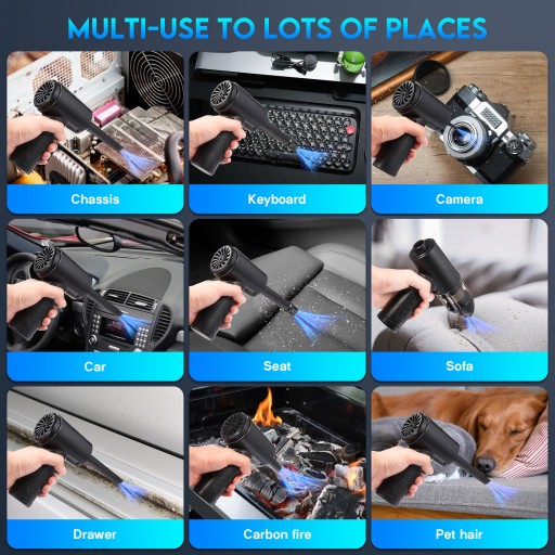 - Czyszczenie sprzętu audio i wideo: Dzięki zastosowaniu wzmacniaczy dmuchawa może pomóc w usunięciu kurzu z głośników, wzmacniaczy, konsoli do gier, telewizorów i innych urządzeń audio-video.