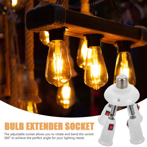 Rozdzielacz gniazda żarówki E27 jest wyposażony w regulowane gniazdo 360° i odporność na temperaturę 200°C, co czyni go doskonałym rozwiązaniem oświetleniowym do wielu zastosowań. Adapter żarówki E27 umożliwia zamontowanie do 4 żarówek w jednym gnieździe. Nadaje się do standardowych żarówek E27, żarówek LED itp.
