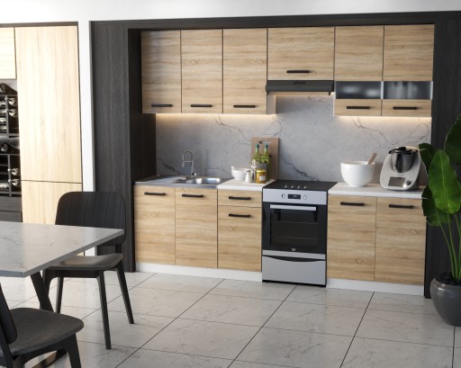 - Dostosowalność do przestrzeni: Dzięki modułowej konstrukcji, szafki można dowolnie zestawiać, tworząc optymalne rozwiązania przestrzenne. To idealne rozwiązanie zarówno dla przestronnych kuchni, jak i tych o ograniczonej przestrzeni