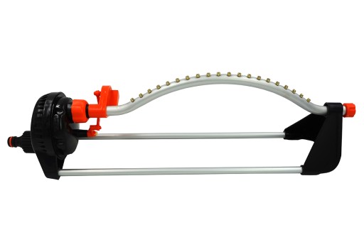 💧 Zraszacz oscylacyjny, wahadłowy posiada aluminiowe ramię oscylacyjne z 20 mosiężnymi dyszami oraz mechanizm odporny na wstrząsy