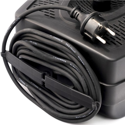 Obudowa zamykana jest na poręczne zatrzaski, które ułatwiają serwisowanie urządzenia. Wygodny uchwyt transportowy, przyda się także do nawijania kabla zasilającego po zdemontowaniu filtra po sezonie. Pompa i lampa UV zasilane są jednym przewodem. Ma on długość aż 5 metrów, co umożliwia wygodne podłączenie do źródła zasilania. W obudowie znajdziesz również diodę informującą o pracy lampy UV. Nie musisz wyciągać filtra aby skontrolować jej działanie.