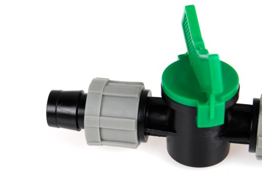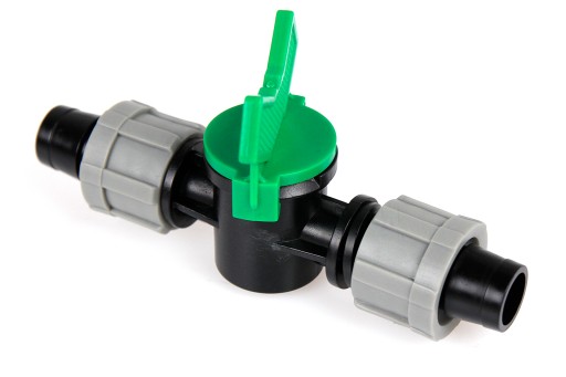 Zawór liniowy służy do odcinania przepływu wody połączonych ze sobą dwóch odcinków przewodów instalacji taśm kroplujących o średnicy 16mm.