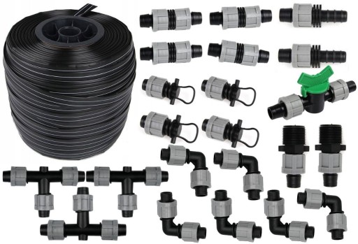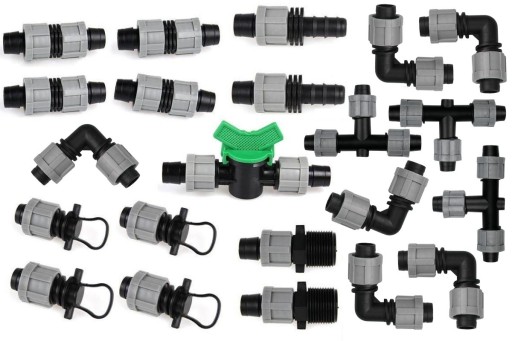Komplet zawiera 22 sztuki akcesoriów do taśmy kroplującej.