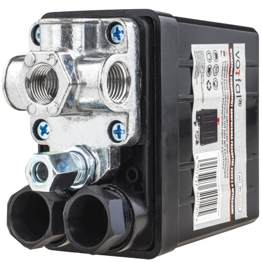Wyłącznik ciśnieniowy do kompresora. Wyłącznik automatycznie wyłącza kompresor, Gdy ciśnienie osiągnie maksymalną wartość i włącza go, gdy wartość ciśnienia spadnie.