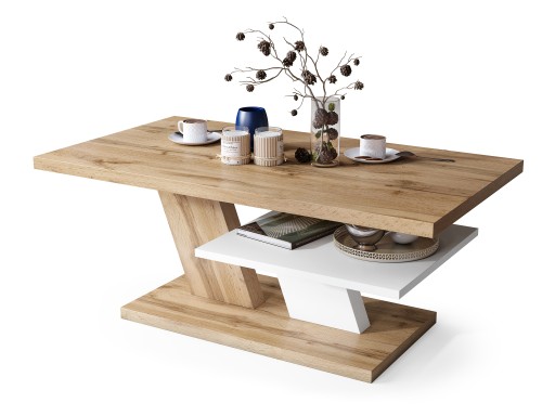 CLIFF MAT Дуб Вотан/Белый - СОВРЕМЕННЫЙ ЖУРНАЛЬНЫЙ СТОЛИК С ПОЛКОЙ