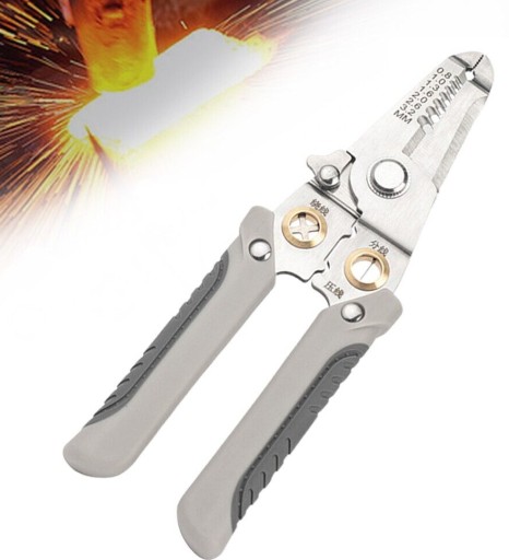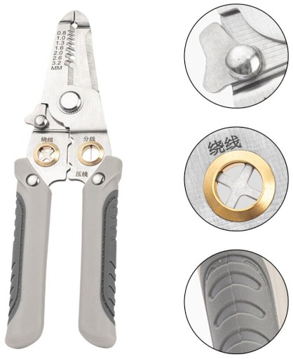 Wielofunkcyjne narzędzie do ściągania izolacji, zaciskania konektorów oraz cęgi do cięcia przewodów.