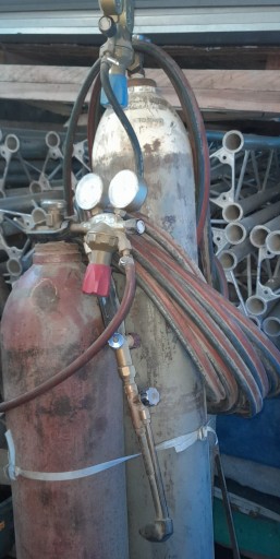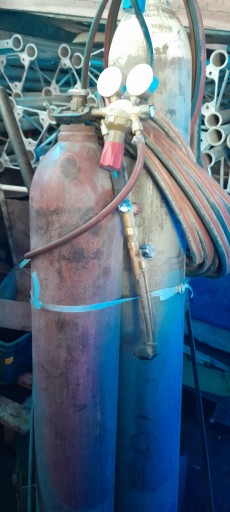 Zestaw butli tlen+acetylen + akcesoria spawalnicze widoczne na zdjęciach.