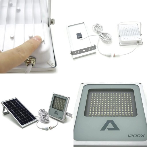 • 180 sztuk białych diod LED, które wytwarzają neutralną białą wiązkę zapewniającą optymalne pokrycie obszaru. Panel słoneczny o mocy 12 W wykonany jest z przemysłowego ogniwa słonecznego o wysokiej wydajności, szkła hartowanego i ramy z anodyzowanego aluminium