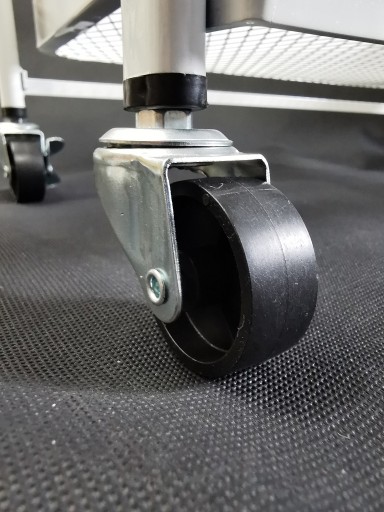 Dwa spośród czterech kółek wyposażone są w funkcję blokady, co umożliwia bezpieczne zabezpieczenie regału w wybranej pozycji. Jest to doskonałe rozwiązanie, zwłaszcza gdy pragniesz zapewnić mu większą stabilność lub planujesz przechowywać na nim delikatne przedmioty.