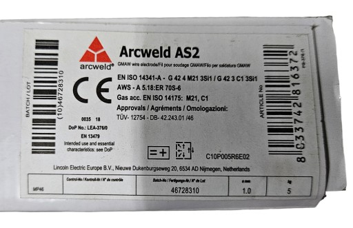 Mam do sprzedania drut do migomatu :Fi 0,8 /5kg. 1./opakowanie cena : 68zł. firmy ARCWELD 10szt. jw. foto.