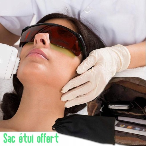 Specjalnie zaprojektowane okulary ochronne do bezpiecznego używania depilatorów laserowych. Okulary mają specjalne szkła które chronią oczy przed niepożądanym naświetleniem. Przez okulary widać przyciemniony obraz , dzięki czemu można w nich depilować całe ciało.