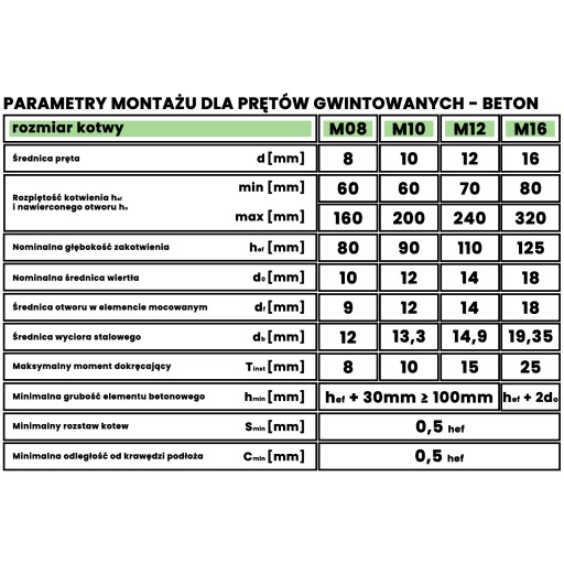 Szczegółowe dane montażowe i wytrzymałościowe można znaleźć w załączonej karcie produktu na dole opisu.