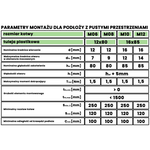 Instrukcja montażu w materiałach z pustymi przestrzeniami