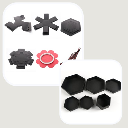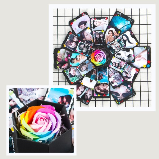 Eksplodujące pudełko kryje w sobie wiele niespodzianek. Po otwarciu jego wielowarstwowa konstrukcja eksploduje, a boki opadną, odsłaniając album na zdjęcia w kształcie róży i małe pudełko na prezent w środku.