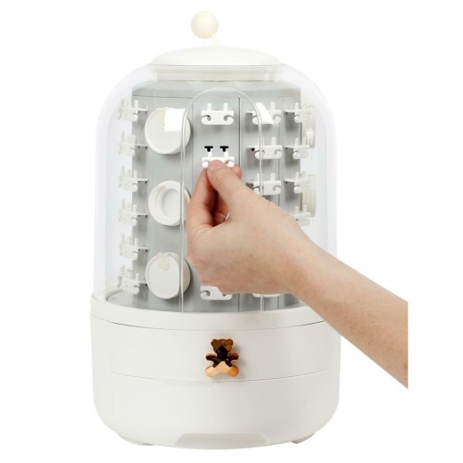 Najnowszym dodatkiem do naszego organizera jest obrotowa podstawa, która sprawia, że dostęp do Twojej biżuterii jest jeszcze prostszy. Obracając szkatułkę, możesz wygodnie wybierać ulubione dodatki, bez konieczności przeszukiwania skomplikowanych szuflad czy pudełek. Nie trzeba już szukać w zatłoczonych szufladach - teraz wszystko jest na wyciągnięcie ręki.