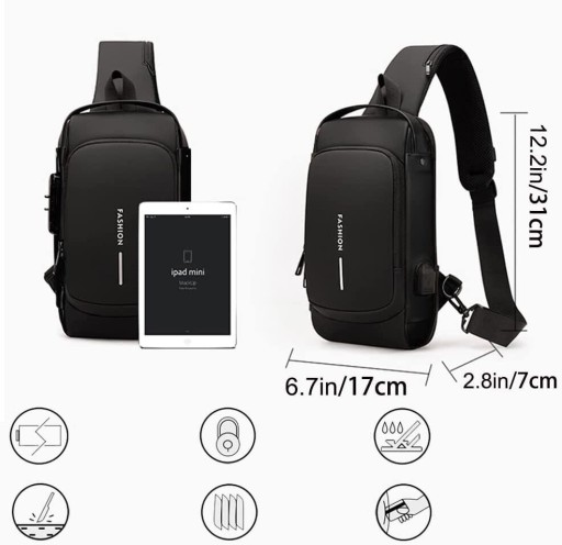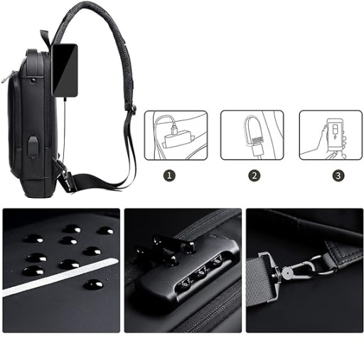 СУМКА-СЛИНГ НАГРУДНАЯ СУМКА, МУЖСКАЯ СУМКА НА ПЛЕЧЕ, ЗАЩИТА ПАРОЛЕМ