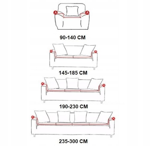 Przy wyborze pokrowca prosimy dokładnie zmierzyć kanapę zgodnie ze schematem pokazanym na zdjęciu