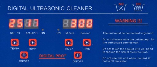 Wszystkie parametry widoczne są na wyświetlaczu LCD. Obsługa całego urządzenia jest bardzo prosta, wręcz intuicyjna. Urządzenie wykonane jest z wysokiej jakości stali. Myjkę wyróżniają także izolowane przetworniki, które dodatkowo zabezpieczają czyszczone produkty.