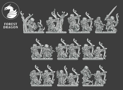 Elf Rangers, Wood Elf Army, Warmaster 10 mm – 10 pasków , plus 3 podstawki.