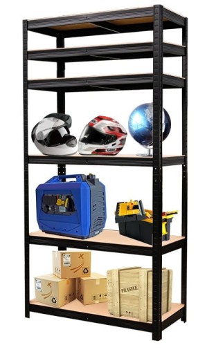 Regał składa się z 6 solidnych półek oraz dwóch kompletów słupów nośnych. Półki wykonane są z mocnego MDF, a każda posiada dodatkowe wzmocnienie w postaci środkowego wspornika. Maksymalna nośność półki to 175kg, zaś całego regału to 1050kg.