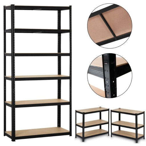 Regał składa się z 6 solidnych półek oraz dwóch kompletów słupów nośnych. Półki wykonane są z mocnego MDF, a każda posiada dodatkowe wzmocnienie w postaci środkowego wspornika. Maksymalna nośność półki to 175kg, zaś całego regału to 1050kg.