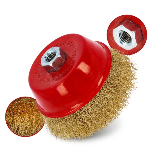 Szczotka druciana, czołowa wykonana została z wysokiej jakości miedziowanego drutu karbowanego. Świetnie sprawdza się w szybkim usuwaniu rdzy, farb i wszelkich zanieczyszczeń z powierzchni drewnianych jak i metalowych. Idealna do prac na średniej wielkości powierzchniach.