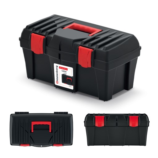 Skrzynka narzędziowa Caliber KCR5025 marki Kistenberg posiada ergonomiczny uchwyt i nosidło narzędziowe z miejscem na bity.