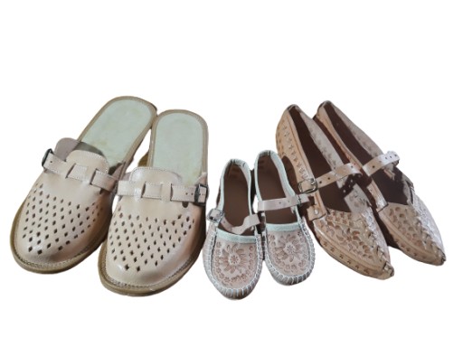 Kierpce wykonane są z naturalnej skóry,ręcznie szyte rzemykiem z jednolitego kawałka