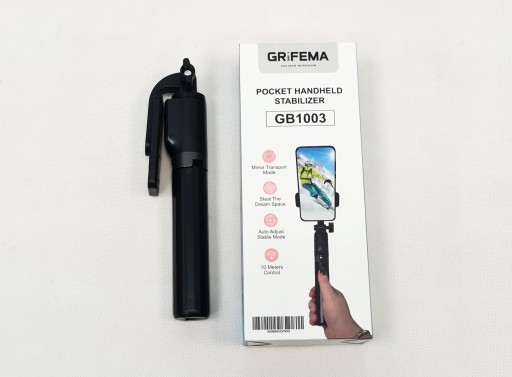 Może być używany jako kijek do selfie lub jako statyw. Selfie Stick Sativ jest wyposażony w zdalne wyzwalanie migawki Bluetooth (zasięg połączenia: 10M; nazwa Bluetooth: GRIFEMA)