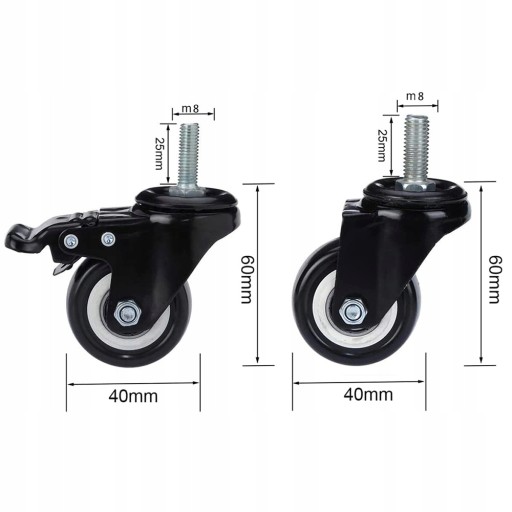 ✅Zestaw 4 kółek o hamulca 40 mm : 2 wózki z hamulcem i 2 wózki bez hamulca.