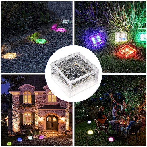 1. Słoneczne lampki z kostkami lodu. Lampka do kostek lodu składa się z 4 diod LED o 6 kolorach: czerwonym, niebieskim, zielonym, żółtym, jasnoniebieskim i fioletowym. Pokryty kwadratowym szkłem, wykonanym ze szkła żywicznego zamiast szkła hartowanego, w szklanej kostce osadzony jest lekki i trwały panel słoneczny. Przycisk włączania/wyłączania na dole. W zestawie pilot z 12 przyciskami. Wymiary elementu: 105x105x55 mm.