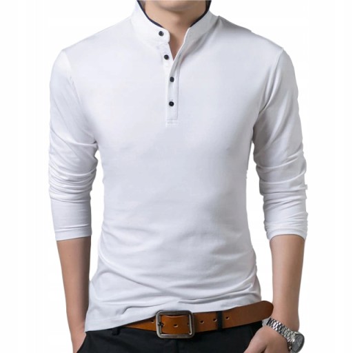KOSZULKA POLO MĘSKA BIZNESOWA WYSOKA STÓJKA