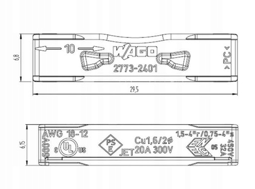 Szybkozłączka instalacyjna WAGO serii 2773 wyposażona w zacisk PUSH WIRE przeznaczona została do łączenia przewodów jednodrutowych (tzw. drut). Produkt ten znajduje zastosowanie przy łączeniu przewodów w puszkach elektroinstalacyjnych, technice oświetleniowej oraz w szafkach rozdzielczych i innych pracach elektroinstalacyjnych. Złączka WAGO umożliwia tworzenie dowolnych kombinacji przewodów o przekrojach od 0.75 mm2 do 4 mm2, prąd nominalny do 32A i wyraźne rozróżnienie kolorystyczne ułatwiające szybką identyfikację wszystko to stwarza doskonałe warunki do tworzenia instalacji.