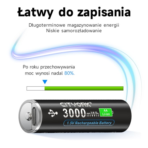 Żywotność baterii: mniejsza lub równa 1500 cykli