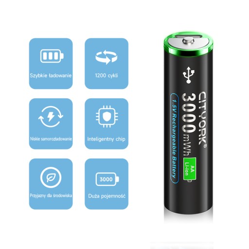 Pakiet zawiera: 16 sztuk baterii AA, kabel USB, etui na baterie