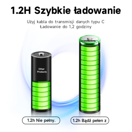 5) Ładowalna bateria litowa, przyjazna dla środowiska, ładowana przez dowolne standardowe złącze Micro USB.