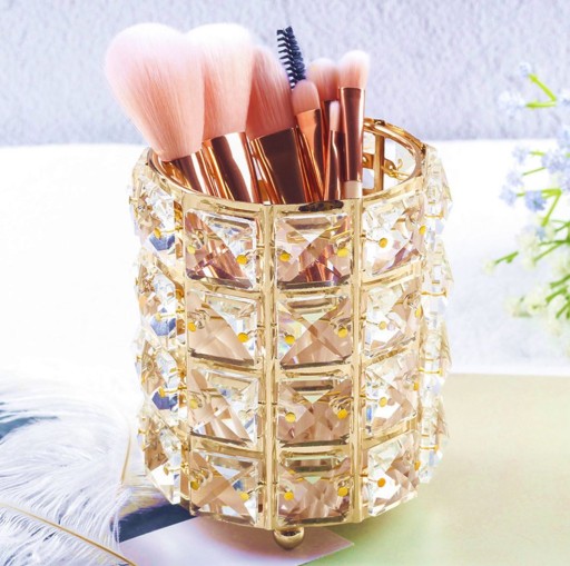 Organizer sprawi, że wykonasz swój codzienny makijaż szybciej i bez stresu, nie martwiąc się, że Twój ulubiony pędzelek znów gdzieś się zapodział. Możesz go postawić na toaletce, w łazience lub na biurku. Złoty kolor i lśniące kryształki pozwolą mu się odnaleźć w niejednym wnętrzu.