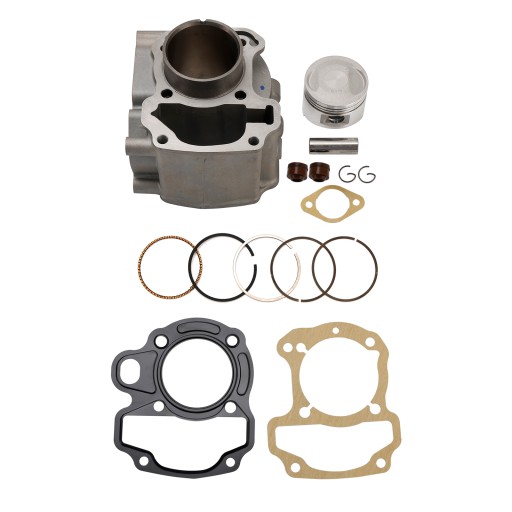 Zestaw zawiera cylinder, tłok, pierścienie, sworzeń, zaciski i zestaw uszczelek górnych (otrzymujesz dokładnie to, co jest na zdjęciu).