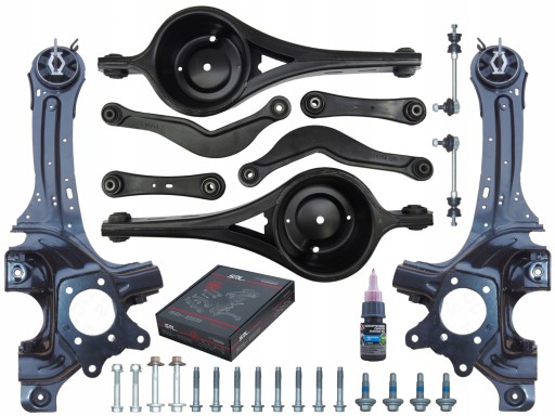 Nowy komplet wahaczy tylnego zawieszenia ze śrubami i łącznikami.
