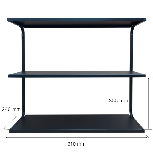 Półka PG3 idealna do przechowywania akcesoriów garażowych. Wykonana z blachy polakierowana proszkowo na kolor czarny mat. Struktura lakieru zapobiega ślizganiu się przedmiotów na półce. Zamocowana do ściany za pomocą dwóch giętych wsporników również lakierowanych na kolor czarny. Dzięki zastosowaniu odpowiednich materiałów nasz produkt ma dużą wytrzymałość posłuży wiele lat i zapewni porządek w garażu.