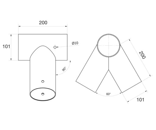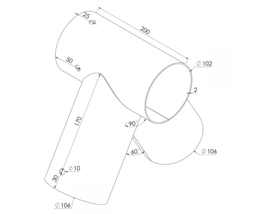 ✅ 2 x łącznik okrągły 90° (górna belka średnica 100 mm; nogi średnica 100 mm)