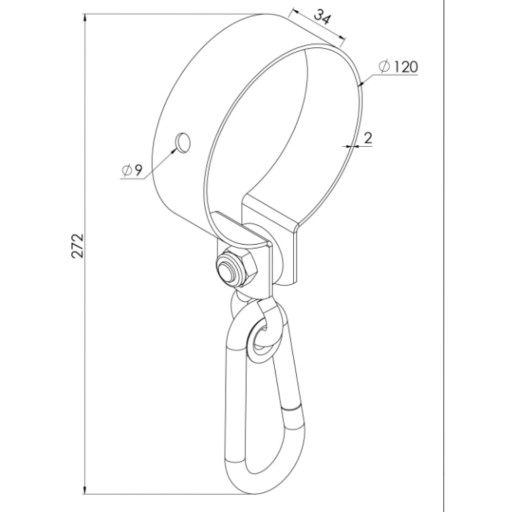 Zawiesię wykonane jest ze stali cynkowanej galwanicznie, odpornej na warunki atmosferyczne. Wyposażone jest w trwałe łożysko oraz karabińczyk do zaczepienia liny.